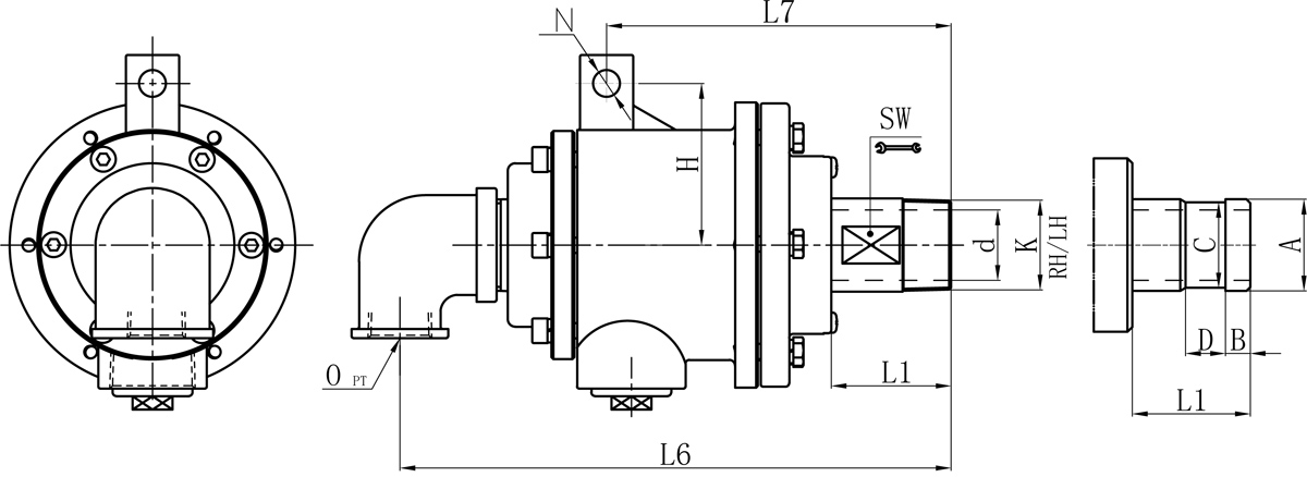 | Model | K | O | d | L1 | L6 | L7 | N | H | SW | 法蘭式外管尺寸對照表 | |||