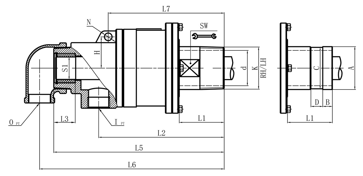 Model K M I O S S1 D1 L1 L2 L3 L5 L6 L7 L8 N SW H 法蘭式外管尺寸對照表